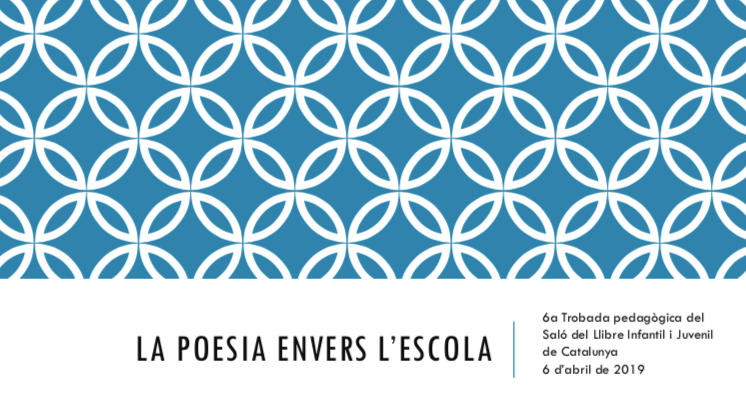 Presentació de llibres de poesia dins la 6ª trobada pedagògica del Saló del Llibre Infantil i Juvenil de Catalunya, celebrada el 6 d’abril de 2019, sota el títol: “La poesia envers l’escola: mirades i experiències”. Departament d’Educació. Pots veure la presentació clicant a la imatge seguent.