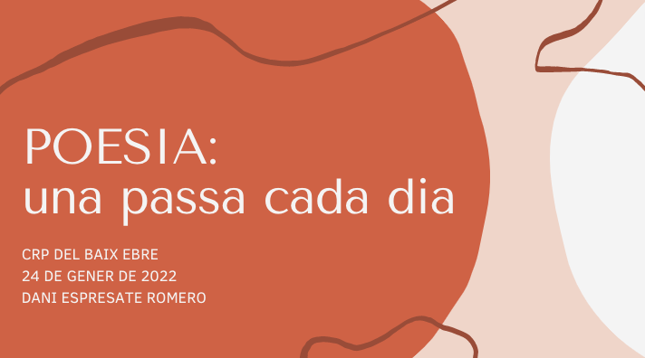 Formació de 3h (dues sessions d’una hora i mitja) on es pretén reflexionar sobre què, com i per què apropar i treballar la poesia als centres educatius. I no ha de ser un fet puntual o aïllat, cal que sigui sostingut en el temps. Veurem com la poesia està present a les nostres vides i com apropar-les a l’alumnat des de les aules, des dels passadissos, des de qualsevol lloc. També es compartiren poemes i poemaris interessants i adients per a cada etapa educativa: infantil, primària i secundària. Es compartiran bones pràctiques al voltant de la poesia i es donarà un temps per a xerrar i intercanviar impressions segons necessitats. Es facilitaran documents complementaris i una bibliografia per a docents i per a infants.